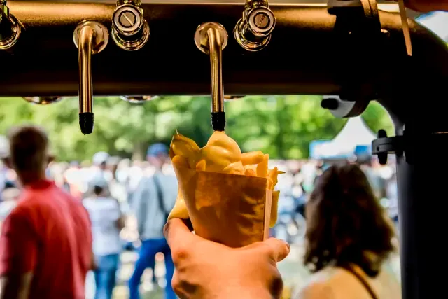 - Onbeperkt heerlijke verse friet geserveerd in een puntzak met extra lange vork.